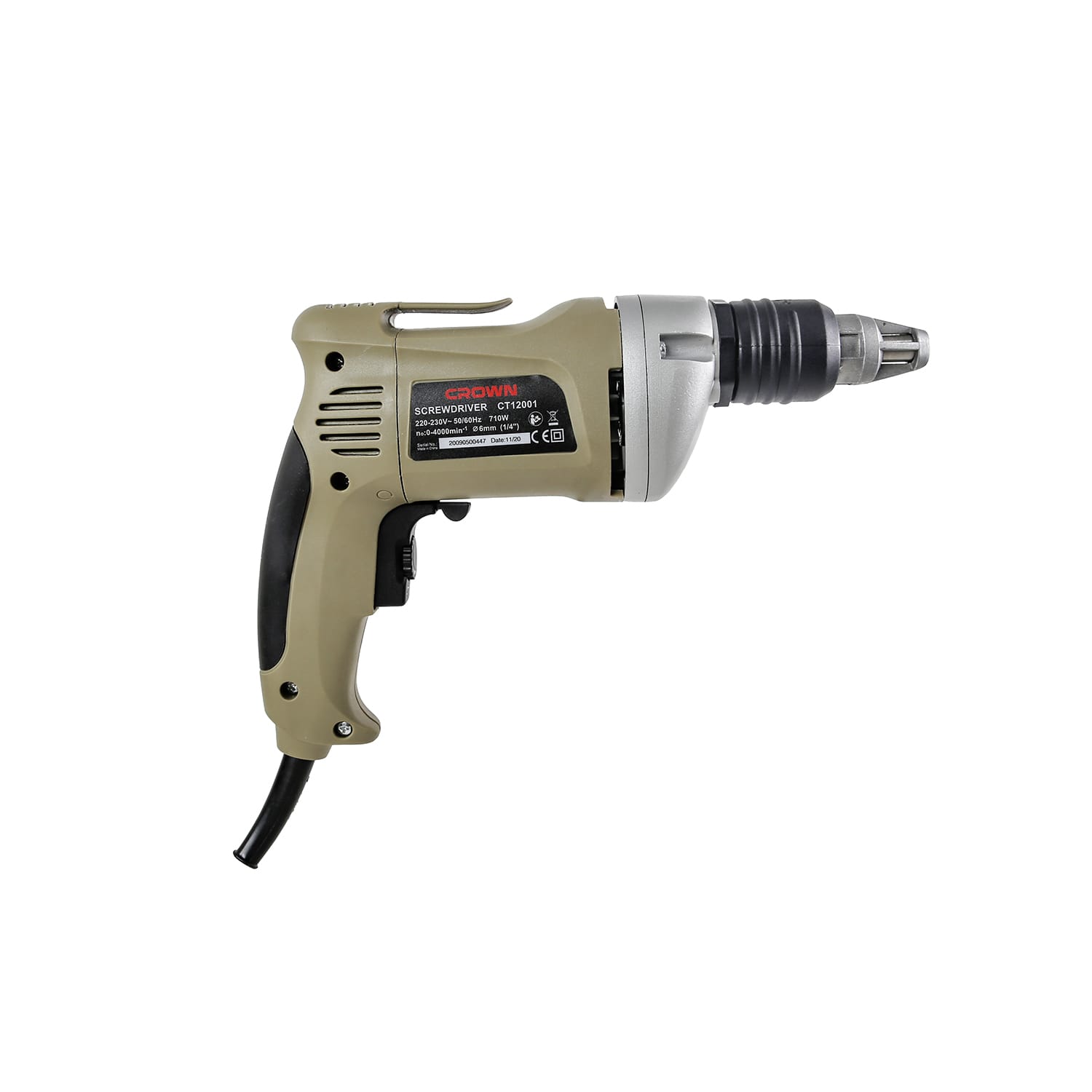 پیچ گوشتی برقی 710 وات کرون مدل CT12001 ، پیچ گوشتی برقی همانطور که از نامش پیدا است، ابزاری برقی بوده که به جهت باز و بسته کردن پیچ در ابعاد گسترده تر بکار گرفته میشود و منبع انرژی آن نیروی برق است. پیچ گوشتی های برقی به دو دسته اصلی سه نظام دار و کلاچی تقسیم می شود. شرکت کرون تمام این مدل ها را به بازار عرضه کرده است. پیچ گوشتی برقی کرون مدل CT12001 مجهز به کلاچ است. عملکرد کلاچ به صورتی است که در هنگام کامل بسته شدن پیچ، از فشار مضاعف بر پیچ و دستگاه جلوگیری می کند. این فرایند مانند عملکرد ترکمتر در پیچ گوشتی های شارژی است. در پیچ گوشتی برقی کرون ، محفظه نگهدارنده کلاچ دستگاه فلزی می باشد. از دیگر ویژگی های این دستگاه، جلوگیری از شروع به کار کردن دستگاه در صورت درگیر نبودن با پیچ است.